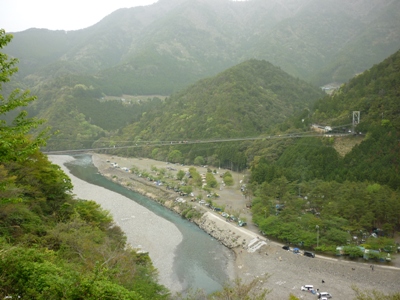 谷瀬の吊り橋付近では、車を置くのにお金がとられます。