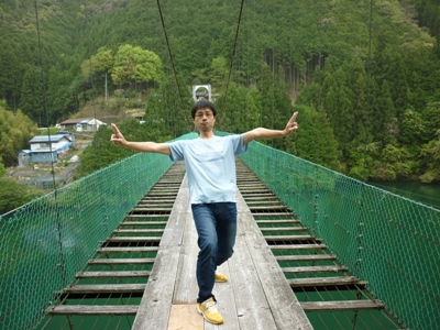 子どもの頃、吊り橋からぶら下がって遊んでいて