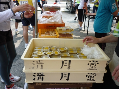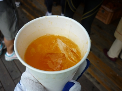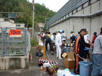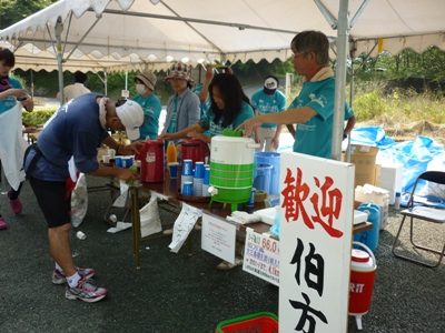 「ペットボトルを持参してエイド毎にお茶、ドリンクなどを入れてもらってちびちびやりながらラン」です。