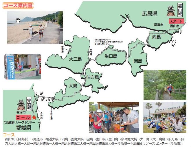 | 13 | 67.7 | 5.6 | 伯方島・大三島橋を渡った所 | 16:25 | 17:09 | 88 | 15:43 |