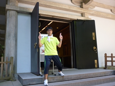 とつぜん「メダルさわりたいひと〜!!」と例の声で叫ばはりました。