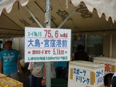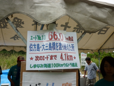 66.0km地点、大三島を渡り終えたところエイド(15:19)