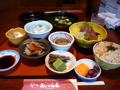 三津の朝市ご馳走膳。鯛飯がおいしい。
