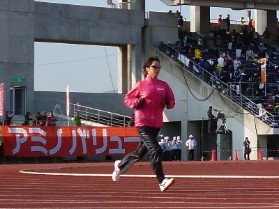 先に終わっていた小学生の部の表彰式で高橋尚子さんがプレゼンターをやってました。
