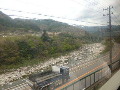 車窓より。桜はところどころ残っています。