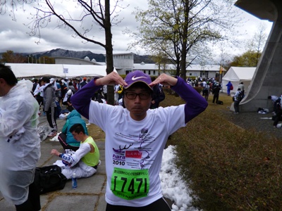 9時40分頃。10km地点。メガネくもってます。