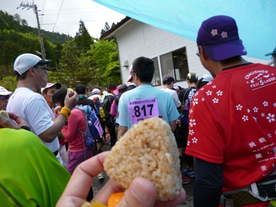 途中からは早朝に若狭・小浜をスタートした本鯖コース(76km)の人たち(黄色ゼッケン)とも合流します。