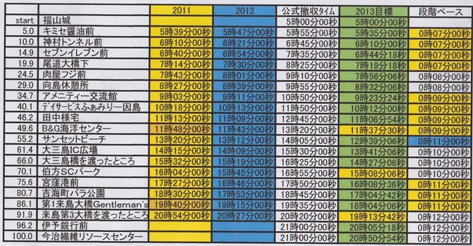 必殺目標タイム表!雨対応じゃなかったのが悔やまれる〜