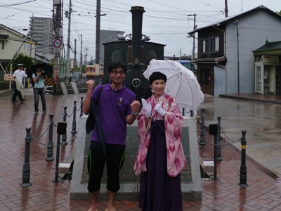 道後温泉定番のマドンナはんとのツーショット