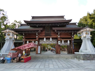 湊川神社。翌日のマラソンのコース上でもあります。