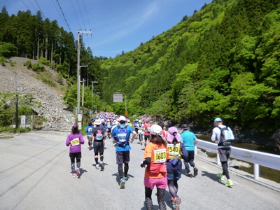 最初の給水ポイントである久多エイドまでは車道を走ります。