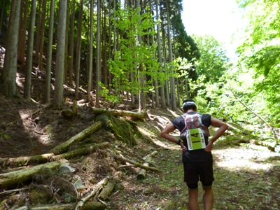 尾越エイド通過直後。林道がめちゃ荒れ!(12:08)