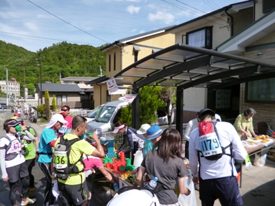 大見エイド到着。目標より15分ビハインド!(12:32)