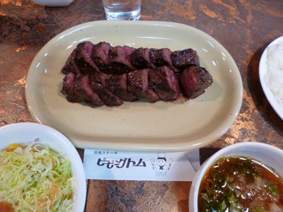 今回のお楽しみ「ピーピングトム」でステーキを息子と楽しみました。