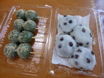 家へのおみやげ(その1)。ふたばの豆餅とよもぎだんご。