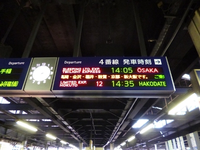 14時5分発のトワイライトエクスプレスに乗り、大阪まで23時間の旅です。