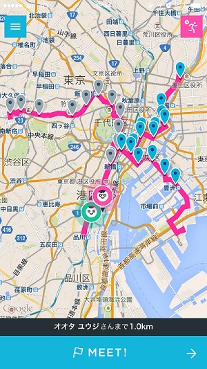 このあたりから歩きとジョグをうまく併用して「計算」をはじめます。