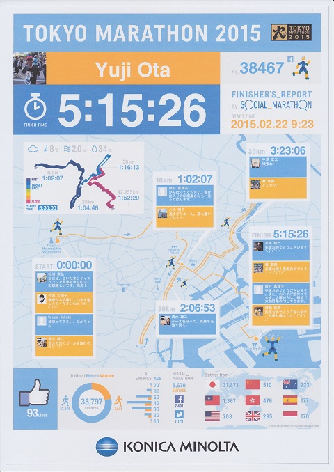 | 42.195km | 0:19:49(4:49:04) | 0:22:34(5:33:10) | 0:18:54(5:28:26) |