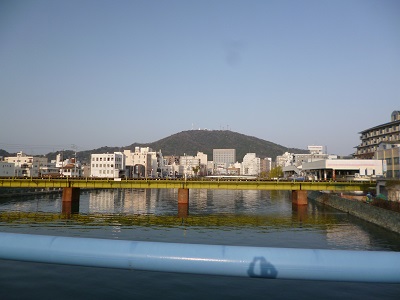 山頂からの景色。徳島県庁や阿波しらさぎ大橋が見えます。