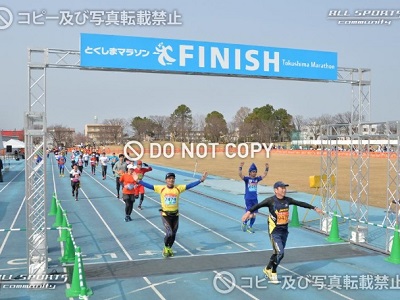 ゴールの徳島市陸上競技場にはいるまえの直線