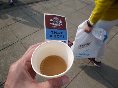 出口付近でミルクコーヒーのサービスもありました(15:09)