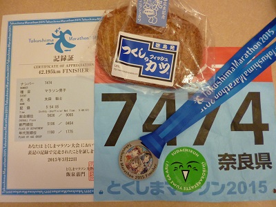 メダル、完走証、フィニッシュカツをもらいました(14:58)