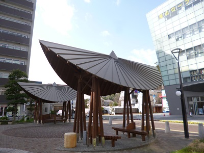 阿波おどり会館の前にあるハンロ小屋「眉山」