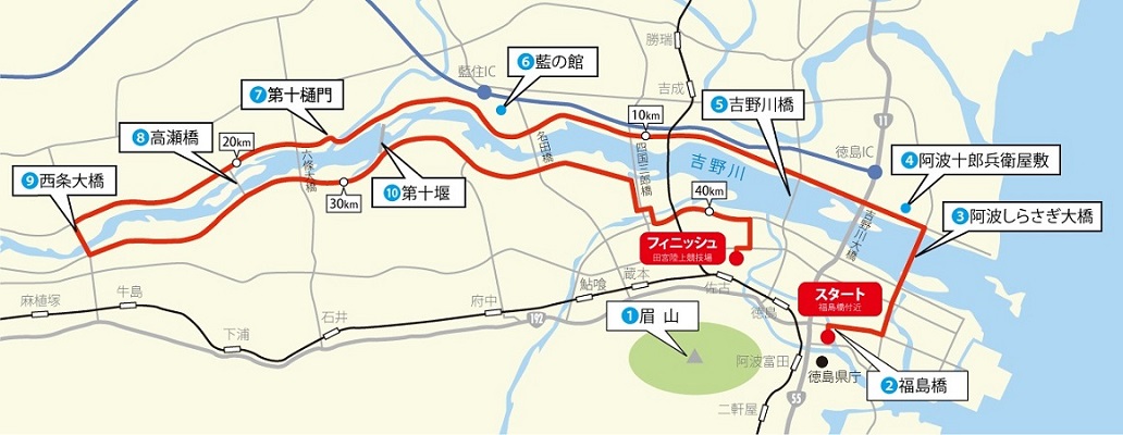 すだちっ子パワーを思いっきり充電して30km地点を通過しました。