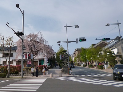 明日はこの交差点を左手から来て曲がっていくのです(大門交差点)