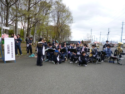 エムウェーブに到着。長野東高校吹奏楽部のみなさんありがとうございます。