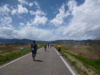 恒例の「魔の岩野橋」35キロ関門で撤収ということになりました。