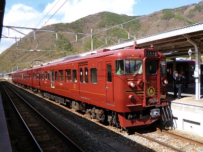 戸倉駅ではめずらしい観光列車が停まっていました。
