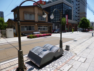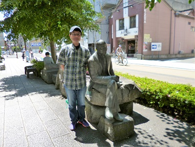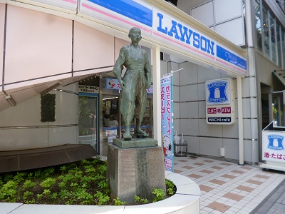 ローソンの前に石川啄木が立っていました。