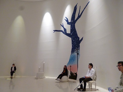 ホテルのロビー階にあった一本桜モニュメント
