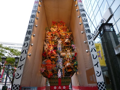 博多駅で大里のとっつあんと落ち合ったらいきなり博多駅の前で山笠を発見。