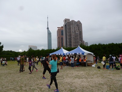 ちょうど博物館からすぐのところにあるももち浜でのマラソン大会に向かいました。