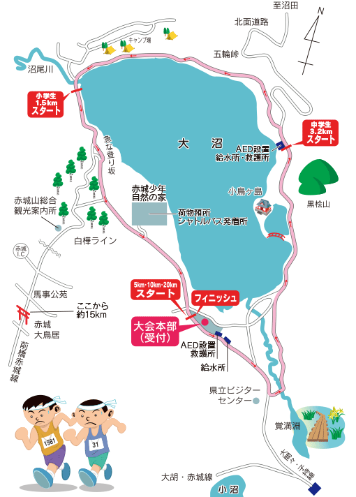 翌日はあの山のてっぺんにある大沼という沼?池?湖?を周回するマラソン大会です。