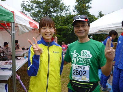 1周回めが終わったところで、5kmを走り終えた西原選手が手を振ってくれていました。