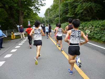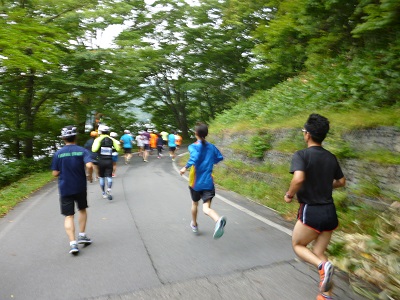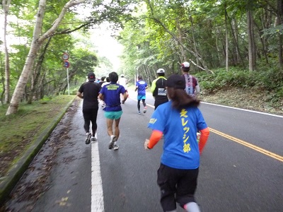 駐車場で着替えたあとは、一方通行規制されているマラソンコースに沿って山を下りることになりますが、