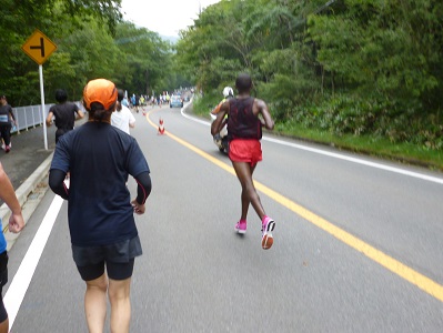 きつい登りで20kmの先頭選手に追い抜かれた(10:28)