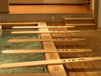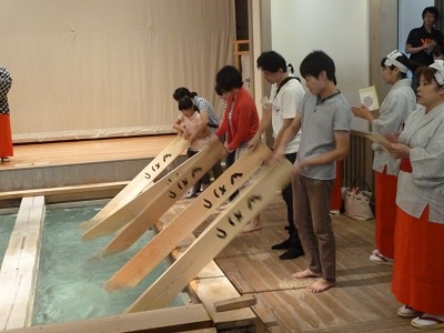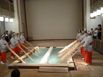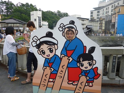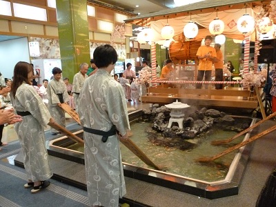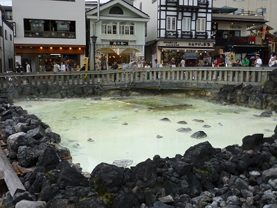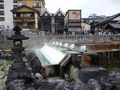 ホテルにチェックインしてからさっそく湯畑へいって「湯もみショー」を見物しました。