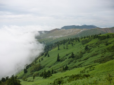 白根山は活火山で、コースのところどころで温泉が湧き出しているから硫黄のにおいがしていたり、