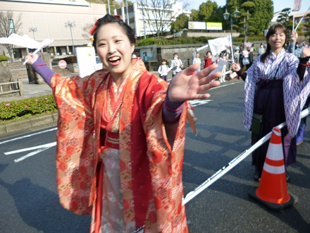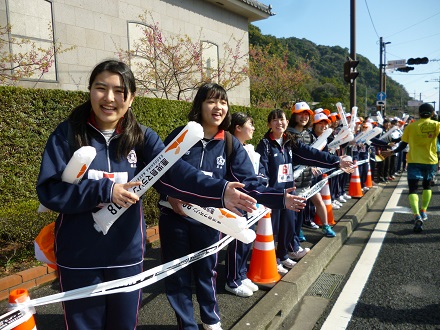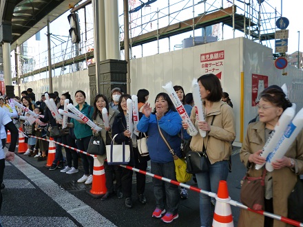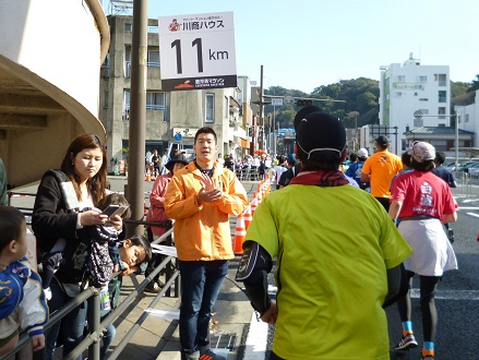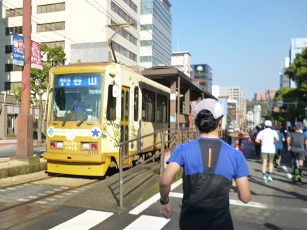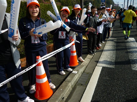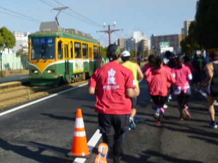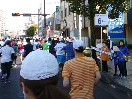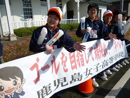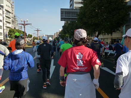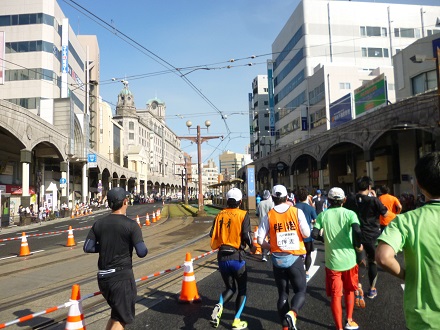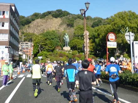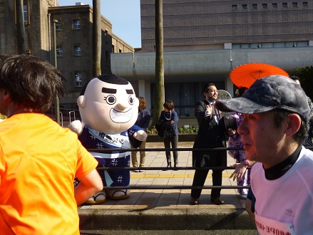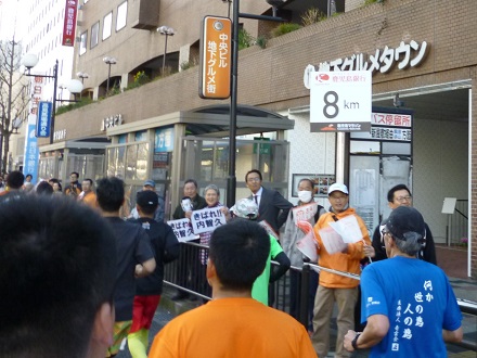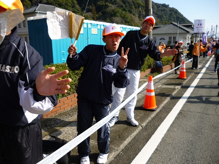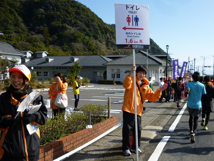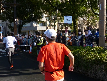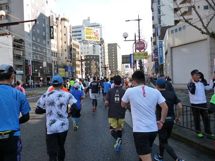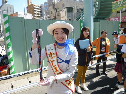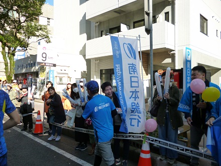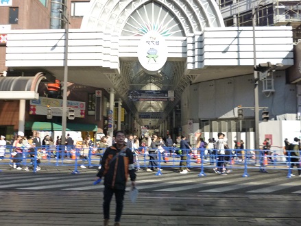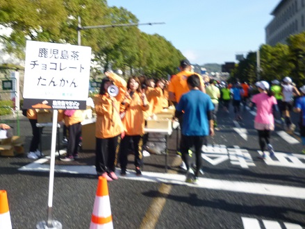 鹿児島随一の繁華街、天文館ではあちこちにマラソンボランティアの道案内の方が立っておられて、