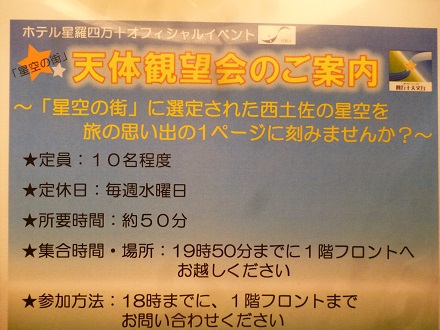 ホテルのイベントで天体観望会を同じ時間にやっていたので