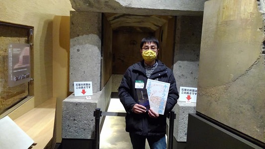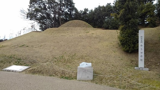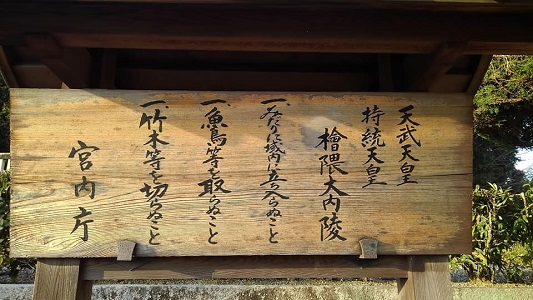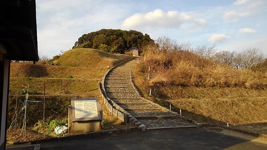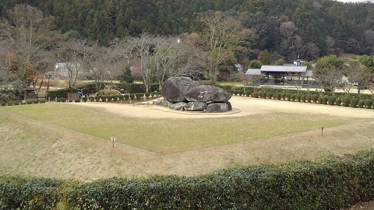 石舞台古墳入り口。飛鳥ハーフマラソンの「のぼり」が立ってます。