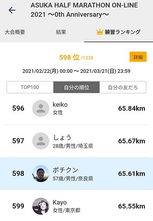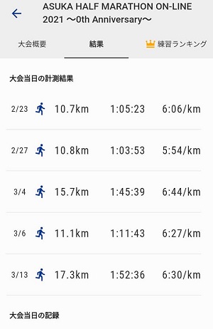 たいそうな名前(笑)がついていますが、飛鳥でのオンラインハーフマラソンです。