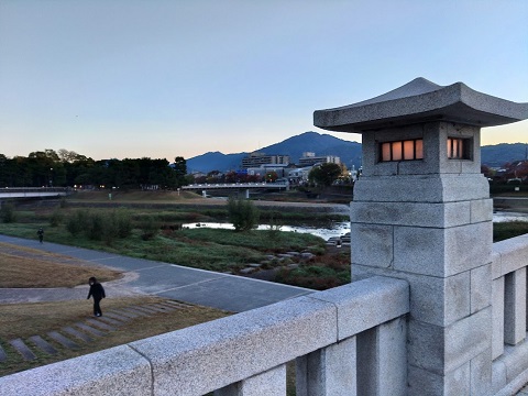 11月上旬に京都で同窓会をしたときの早朝の加茂大橋