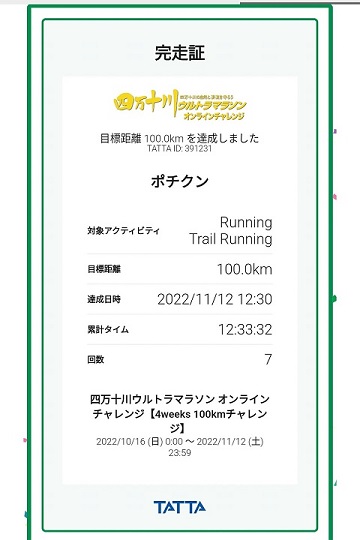 100km達成したのは11月12日の12時30分