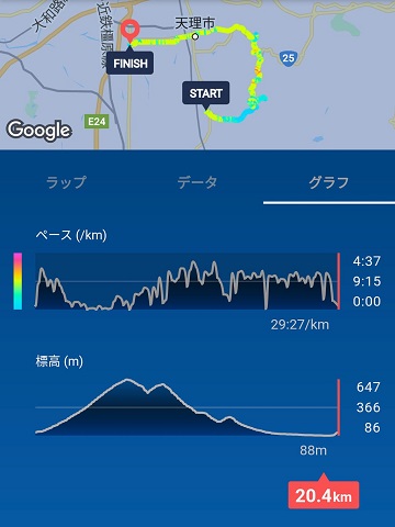 コースは18キロだったけど、道をまちがえたので20キロになりました(^^;(