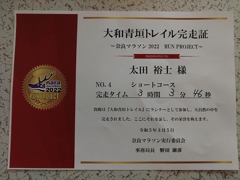 完走証がうれしい!